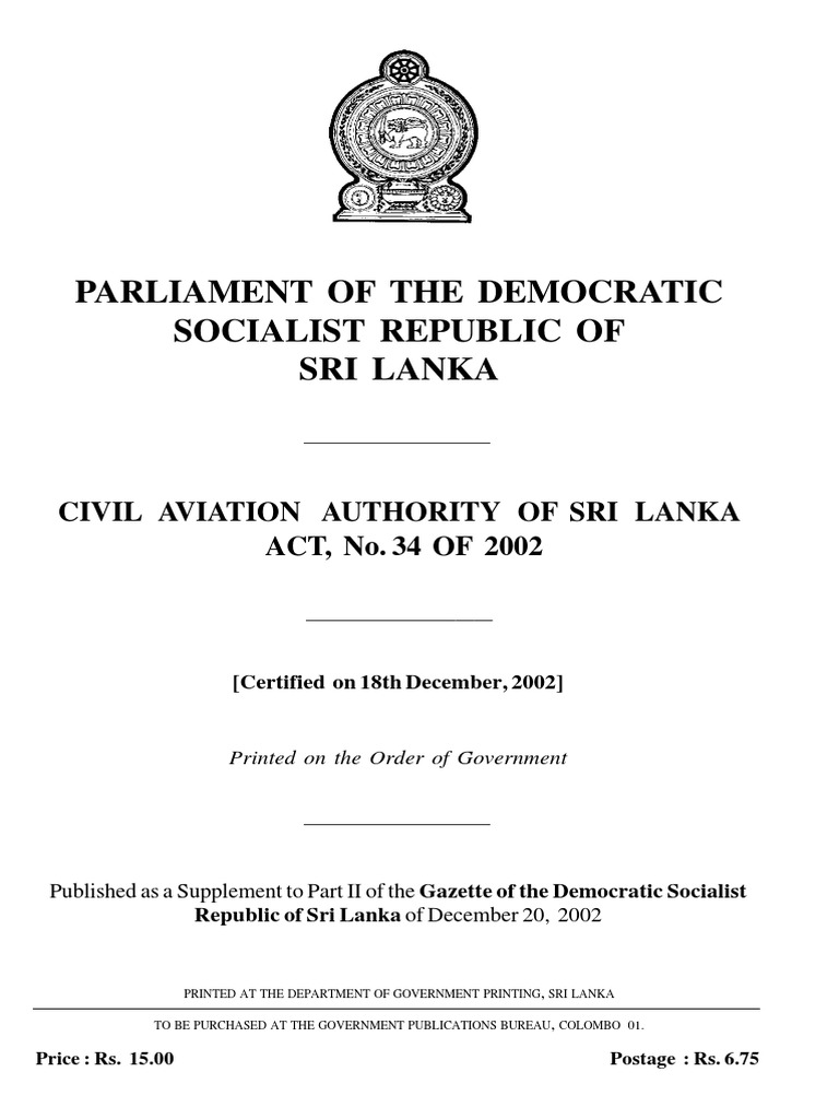 Civil Aviation Authority Sri Lanka Act 34of2002 | Fine ... from imgv2-1-f.scribdassets.com Akta penerbangan awam 1969), is a malaysian law which was enacted to make better provision in the law the civil aviation act 1969, in its current form (27 august 2015), consists of 10 parts containing 28 sections and 1 schedule (including 8 amendments). 96 use of records and documentary evidence (1) in any legal proceedings—. Act 3englishall amendment up to february 2018. Akta penerbangan awam 1969), is a malaysian law which was enacted to make better provision in the law relating to civil aviation and for matters connected therewith and ancillary to it. The civil aviation act 1969 (malay: The act contains 10 parts, 28 sections and one schedule. Infrastructure, transport, regional development and communications. An act to make better provision in the law relating to civil aviation and for matters connected therewith and ancillary to it.